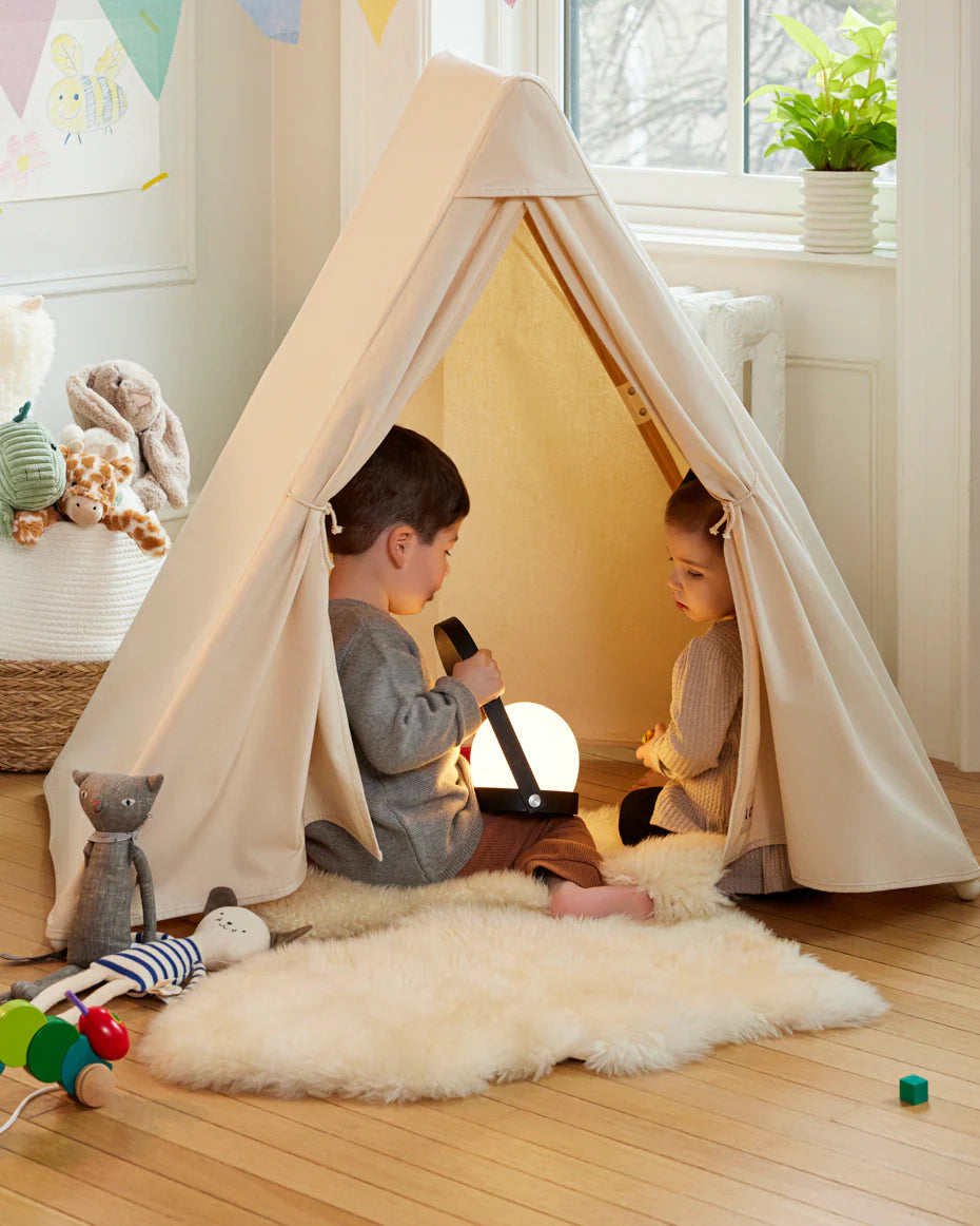 Le tipi devient une bulle à soi, où l’enfant peut s’inventer des histoires et stimuler son imagination.