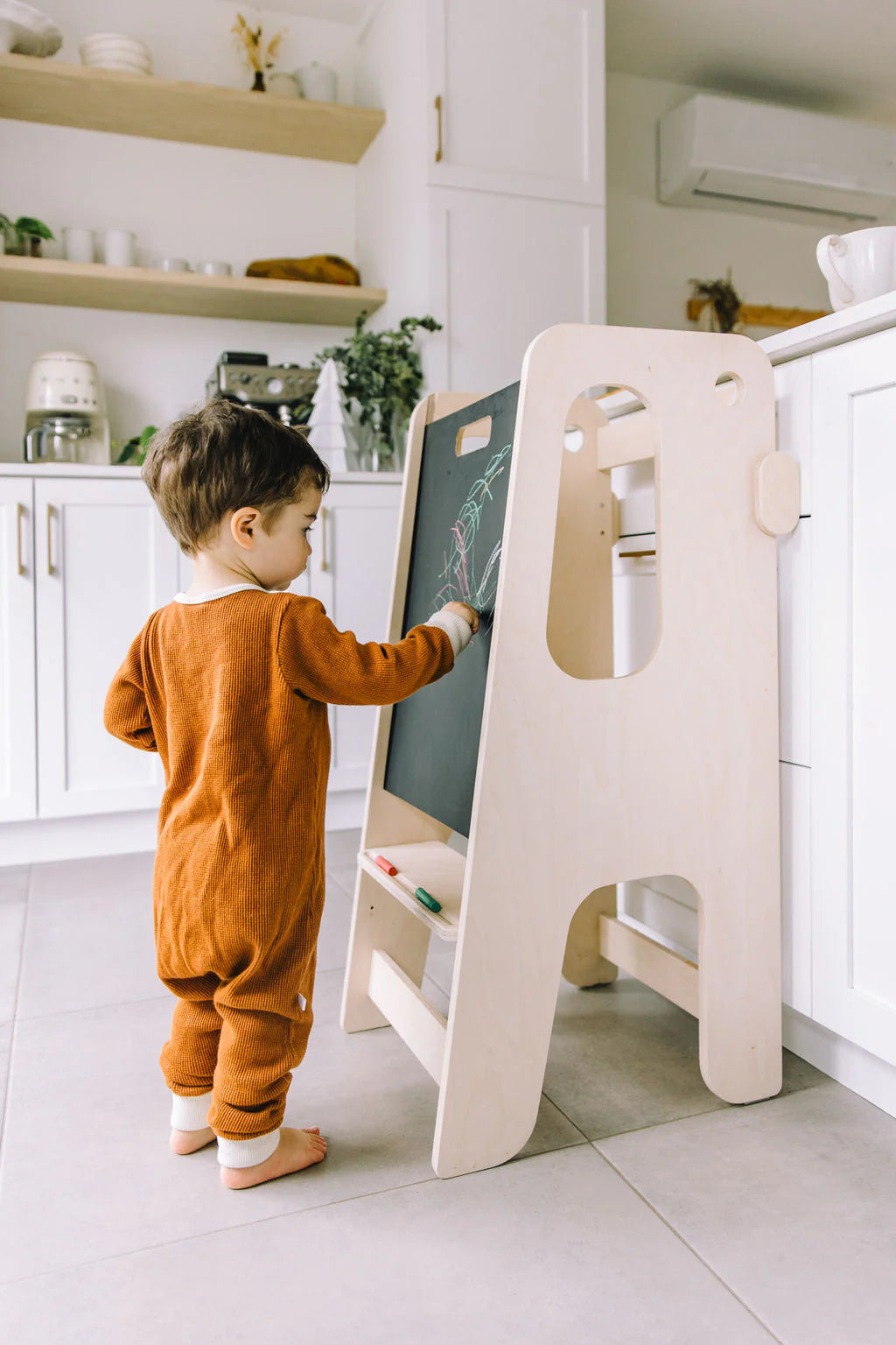 Oui, la tour devient rapidement indispensable. Chaque jour, l’enfant s’en sert pour observer, apprendre et imiter les gestes des adultes.