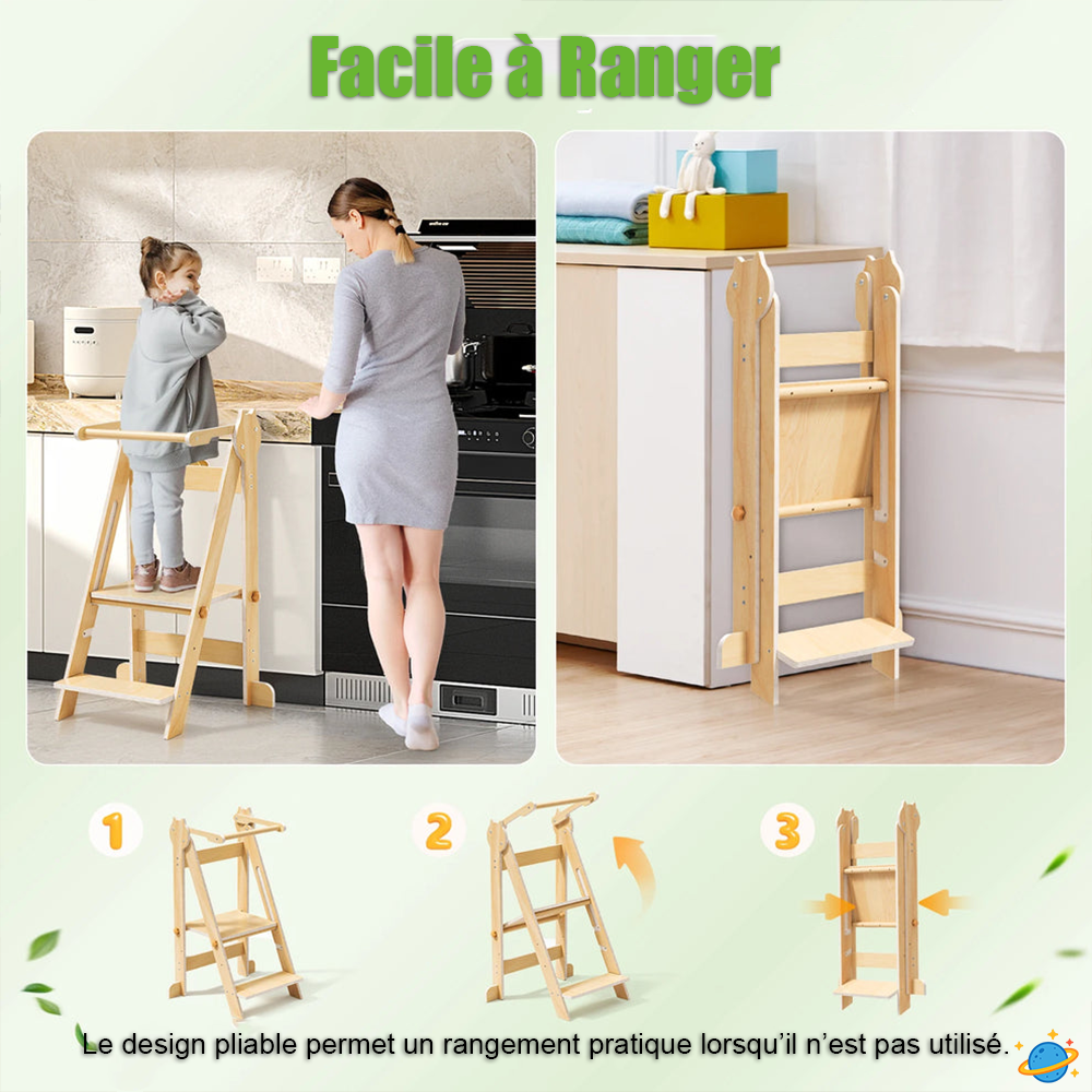 Oui, conçue pour être robuste et stable, la tour permet à l’enfant de prendre de la hauteur sans danger.