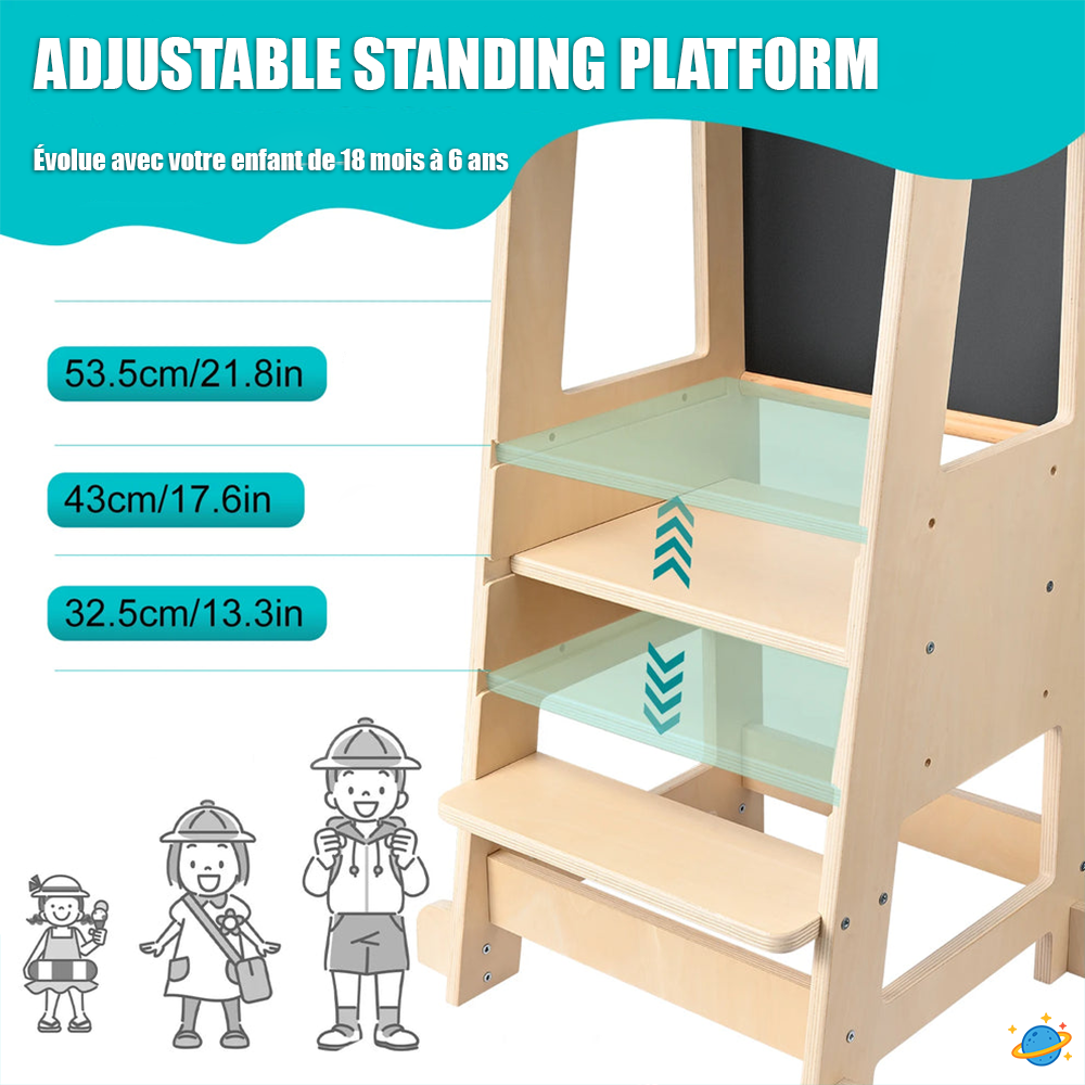 Tour d’Observation Montessori Évolutive – Avec Tableau Noir Double Face
