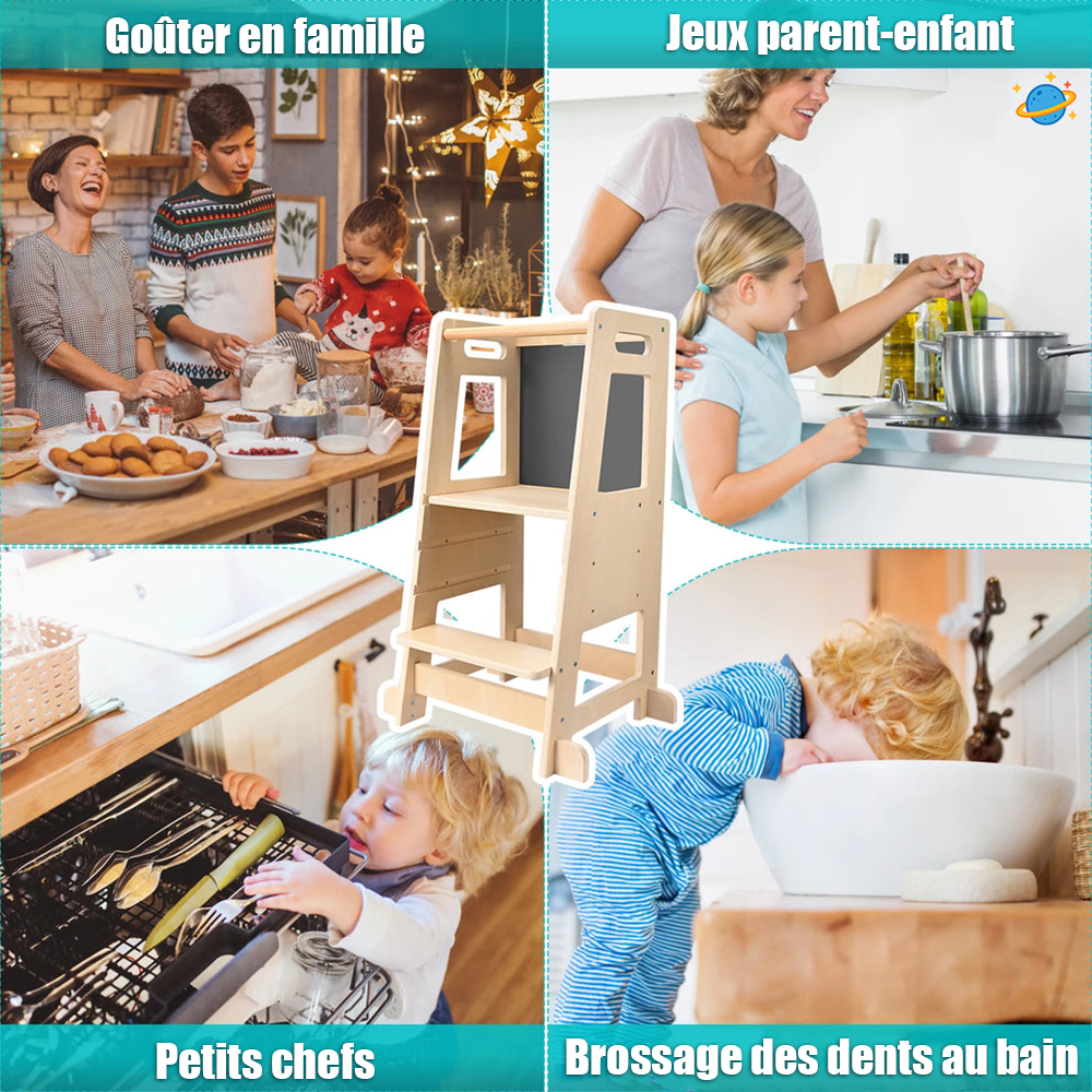 Oui, la tour devient rapidement indispensable. Chaque jour, l’enfant s’en sert pour observer, apprendre et imiter les gestes des adultes.